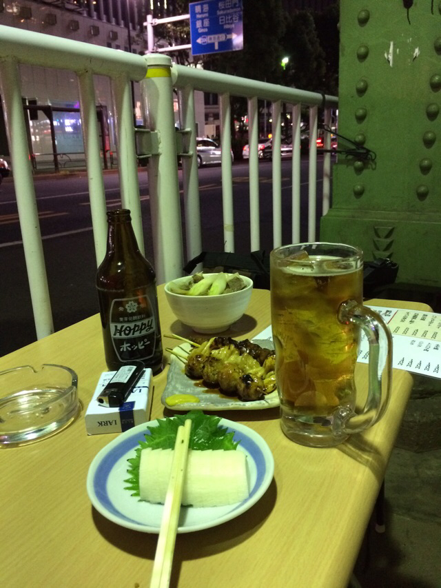 2014年7月8日18時35分。「第2有楽橋架道橋 東海道線(4) 第2有楽橋ガード」下より「JTB トラベルゲート有楽町」方面へ向かって、焼き鳥店「車屋」を撮影しました。 -